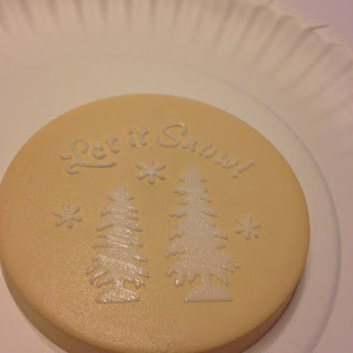 This time we will try a “let it snow” stencil. Since this one has a larger design than the Fleur, make sure to get icing over the entire thing.