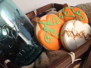 Start out by baking some pumpkin shaped sugar cookies. For some tips on how to bake cookies that keep their shape, check out my tutorial