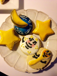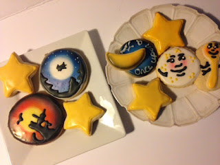 To make these cookies, I decided to use a small scalloped circle and small scalloped oval cutter. I put them together and baked them so they would fuse as a single cookie. No sense separating star-crossed lovers, eh? Er . . . moon crossed lovers, I guess. Plus– I thought it would be cuter if they were holding hands. Everyone together . . . AWWWWW– so SWEET . . .