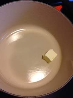 Start out by melting your butter. This makes a lot of soup, so it takes a lot of butter. Just think– you are making about 15 servings, so it’s really not too bad, per serving. Turn your Dutch Oven on medium heat and allow it to heat up. Low and slow is the name of the cream soup game– if you turn it up too high, a milk-based soup will scorch. Eeeewwwww. Breathe deeply and enjoy the experience.