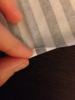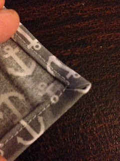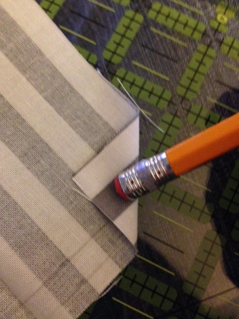 When you get the initial side folded, go back and fold your “fold” one more time. Fold first on the 1/4″ line, and then fold up, again, on the 1/2″ line. You are basically turning the rough edge, in on itself, so it doesn’t unravel.