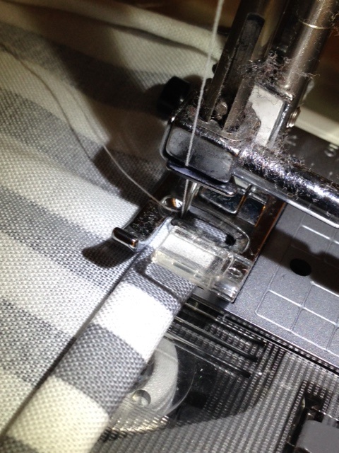 Sew your hem along the top edge. Make sure you remove the pins, as you go. Sometimes, you can get to sewing, and you’re clicking along, humming a song, and you sew right through a pin. Ouch! Don’t do that to your faithful little machine.